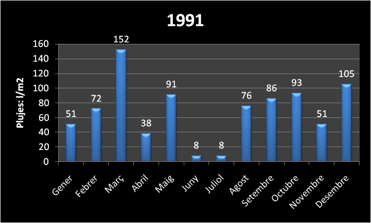Plujes totals de l'any 823 l/m2.